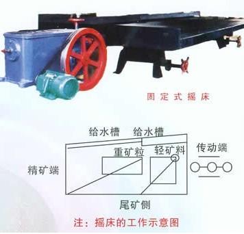 摇床是选别细粒矿石的高效重选设备,广泛用于钨、锡、钽、铌及其他稀有金属和贵金属矿石的选别,也用于铁锰矿石的选别,近年来也有报道用摇床回收磁选厂尾矿中的铁矿物以及选云母等非金属矿物的。 摇床选矿的优点:①富矿比(精矿品位与原矿品位之比)比其他许多选矿方法都高,最大可达100多倍;②一次选别就可获得合格精矿和废弃尾矿;③矿石在床面为扇形分带,便于观察和调节;④产品可根据需要用分割板分开后分别接取...
