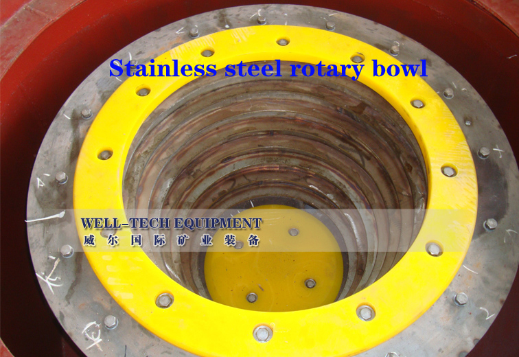 离心选矿机与平面溜槽相比有如下优点: ①离心选矿机对微细矿泥的处理比较有效,对37~19微米的粒级回收率高达90%左右,因为矿粒在离心选矿机中的分选是借离心力和横向流膜的联合作用,所以共富集比高于平面重力溜槽; ②由于离心选矿机利用离心力的作用,因而强化了重选过程,缩短了分选时间,因此其处理能力大,为自动溜槽的10倍左右。 ③占地面积小,自动化程度高。...