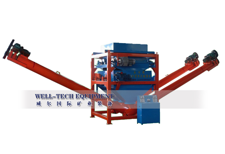 磁选设备一般是先根据磁场强度的高低分为弱磁场磁选设备和强磁场磁选设备两大类(也有分为弱磁场、中磁场和强磁场三大类的)。磁场强度低于240 kA/m(3000Oe)时为弱磁场,高于此值时为强磁场。弱磁场磁选设备主要用于选分强磁性矿物,而强磁场磁选设备用于选分弱磁性矿物。 其次是根据选别作业处理矿浆还是处理干矿而把磁选设备分为干式和湿式两类。干式设备处理粗粒或大块物料,湿式设备处理细粒和微细料物...