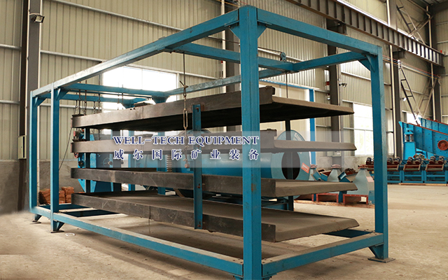 選礦搖床是一個(gè)傾斜的床面上借助機(jī)械的不對稱往復(fù)運(yùn)動(dòng)和薄層斜面水流等的聯(lián)合作用,使礦粒在床面上松散、分層,分帶:,從而使礦物按密度不同來進(jìn)行分選的過程。!