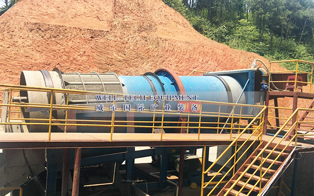 圓筒洗石機(圓筒洗礦機)利用旋轉的圓筒和內部的刮板以及物料中自有的卵石和巖石來分解粘土,塊狀物和軟氧化物。洗石機的圓筒慢慢地旋轉,類似于一個巨大的洗衣機。粗細不同的物料還有水同時在一起翻滾攪動,有效地把有用礦物從泥性土壤,粘土中釋放出來。分散均勻后漿狀般的物料被圓筒送到尾端,并從溢流口排到錐形篩進行篩分。錐形篩把大于有用礦物的粒度的物料排出。