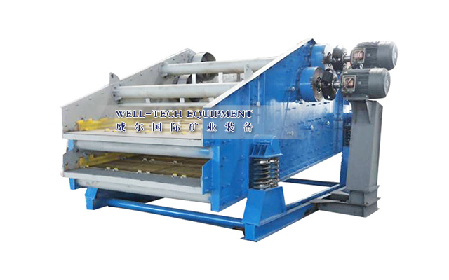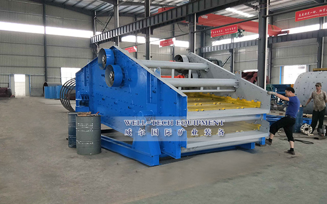 3、振動(dòng)篩。包括機(jī)械振動(dòng)篩和電力振動(dòng)篩兩種。屬于前者的有慣性振動(dòng)篩、自定中心振動(dòng)篩、直線振動(dòng)篩和共振篩。屬于后者的有點(diǎn)振動(dòng)篩。根據(jù)篩面運(yùn)動(dòng)軌跡不用又可分為圓振動(dòng)篩和直線振動(dòng)篩兩種,圓振動(dòng)篩是由不平衡振動(dòng)器的回轉(zhuǎn)質(zhì)量產(chǎn)生的激烈振力使篩體產(chǎn)生劇烈的振動(dòng)作用,篩子的運(yùn)動(dòng)軌跡為圓形或接近圓形,由于篩分的效率比較高,目前在選礦廠中應(yīng)用最廣泛。直線振動(dòng)篩由振動(dòng)器定向拖動(dòng)篩子,篩框?yàn)樗桨惭b運(yùn)動(dòng)軌跡成直線振動(dòng),以保證無(wú)聊在篩面上產(chǎn)生劇烈的抖動(dòng),主要用于煤的脫水分級(jí)、脫介、脫泥,也可用在磁鐵礦的沖洗、脫泥和分級(jí)等。