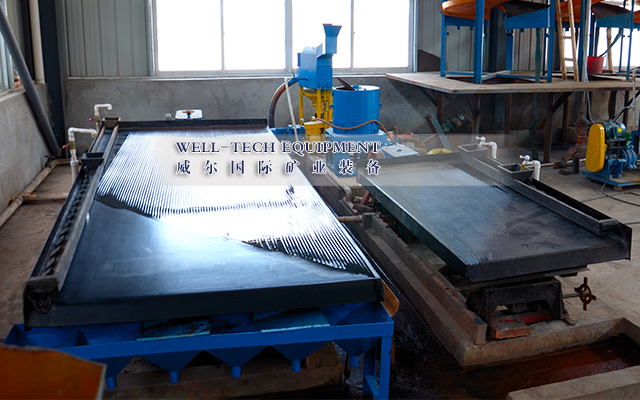 2、重選:黑鎢礦重選通常采用多級(jí)跳汰、多層搖床、中礦再磨的重選流程。細(xì)碎后合格礦經(jīng)過振動(dòng)篩分級(jí)后進(jìn)行多級(jí)跳汰,產(chǎn)出跳汰重選毛砂,粗粒級(jí)跳汰尾礦進(jìn)入磨機(jī)再磨,細(xì)粒級(jí)跳汰尾砂經(jīng)過分級(jí)機(jī)后進(jìn)入多級(jí)搖床選別,產(chǎn)出搖床重選毛砂,搖床尾礦排入尾礦庫(kù),搖床中礦返回再磨再選,跳汰和搖床的重選毛砂進(jìn)入精選作業(yè)。