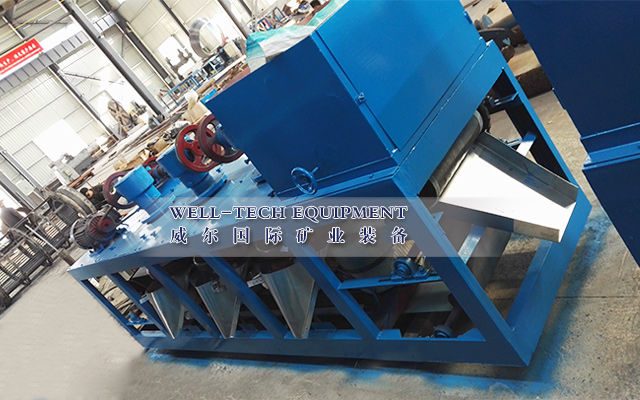 威爾長石磁選機結構緊湊,根據選礦工藝流程,可以設計多段磁選串聯(并聯)為一體的機型,減少磁選機。