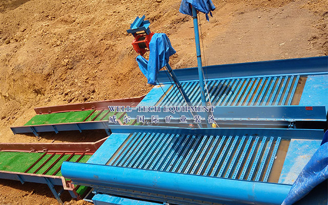 固定溜槽,由簡單的粘金草制造,造價低廉,維護(hù)簡單甚至不用維護(hù),使用最為廣泛,幾乎所有的小型砂金礦都在使用,但效果是最差的,由此所帶來的損失,是個天文數(shù)字。