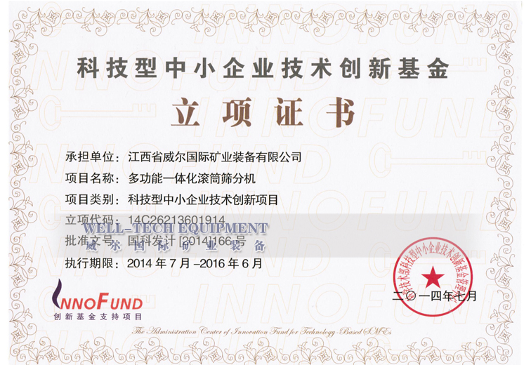 江西省威爾國際礦業裝備公司研發的多功能一體化滾筒篩分機獲國家科技部2014年“科技型中小企業技術創新基金”,下一步企業將立足于已經擁有相關專利基本上繼續追加創新投入,對產品進行升級換代。