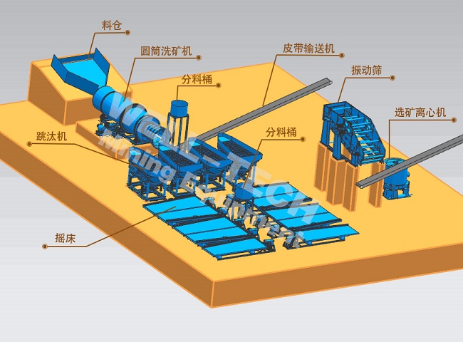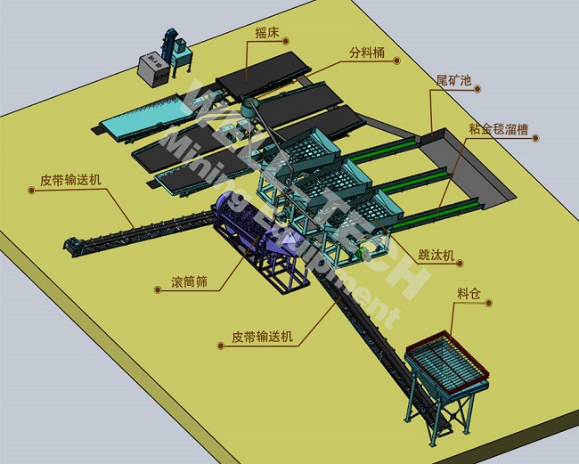常用選沙金流程及設(shè)備布置圖。關(guān)于更多的設(shè)備選型歡迎咨詢:18907978600