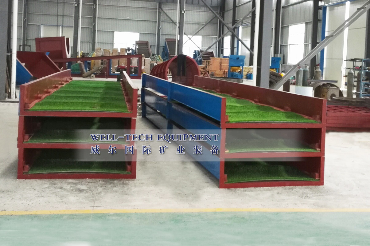 雖然粘金溜槽有許多的優點,但是它對細粒金和片狀金的選礦效果較差,總體來說粘金溜槽的回收率低于70%。因此現在越來越多的礦主都采用更為先進的選金設備,比如使用鼓動溜槽,跳汰機或者選礦離心機來提高金的回收率。