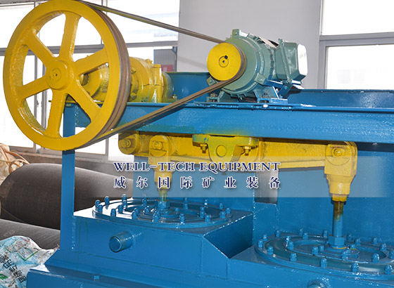 根據被處理礦石的粒度,可以變更連桿的沖次和選取不同的沖程,以便獲得最好的跳汰的效果。變更沖次的方法是更換小皮帶輪,可有兩種沖次:322次/分鐘;420次/分鐘。選取沖程方法為松開緊定螺釘和螺帽、拉出定位銷、轉動偏心調整套與偏心軸之間的相對位置,可有11種不同的沖程 (0-25.3mm).