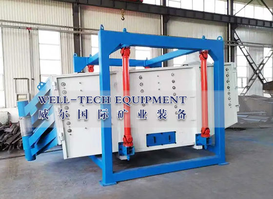 方型搖擺篩又可叫往復式振動篩、精密振動篩,其電機驅動裝置所產生的振動力是一繞定軸、方向呈一定規律變化的慣性力,本質是由偏心輪繞定軸轉動所形成的往復慣性力。根據搖擺篩的結構特點及工作原理,其篩面一般為水平或微傾斜布置(傾斜角度為0°-5°)。