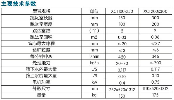 XCT隔膜式跳汰機是重力選礦機一種,重力選礦是基于礦石的比重不同,在介質中沉降速度亦異,利用礦物重量上的差別,而完成礦粒混合物的分層選別工作。隔膜式跳汰機適于選別黑色和有色金屬、化學、建筑等方面的實驗研究之用。
