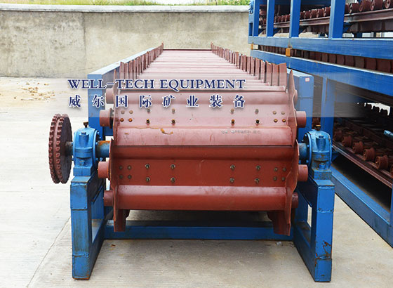 鏈板式給料機是連續給料機械,適用于短距離輸送給料粒度160mm以下的塊狀物料,廣泛用于從儲料倉往破碎、運輸等機械作均勻連續給料。可水平安裝,也可傾斜安裝,其最大向上傾角20度。適用范圍 : 礦山、選廠、化工、水泥、建材等部門,生產能力:60-107 m3/h,最大給料粒度:160mm。